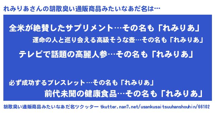 | ヘコむあだ名 | 『れみお』『れみりあ(笑)』 |