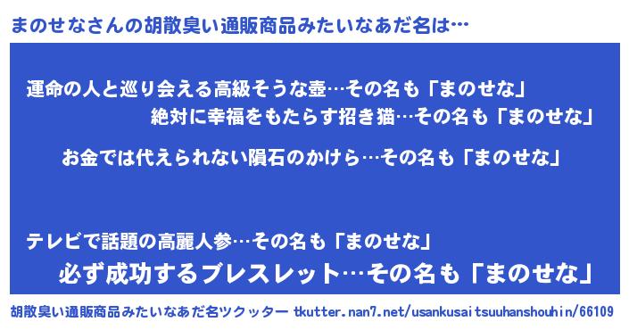 | ヒーロー風カッコイイあだ名 | 『慈愛の使者まのせな』『ネオマノセナ』 |