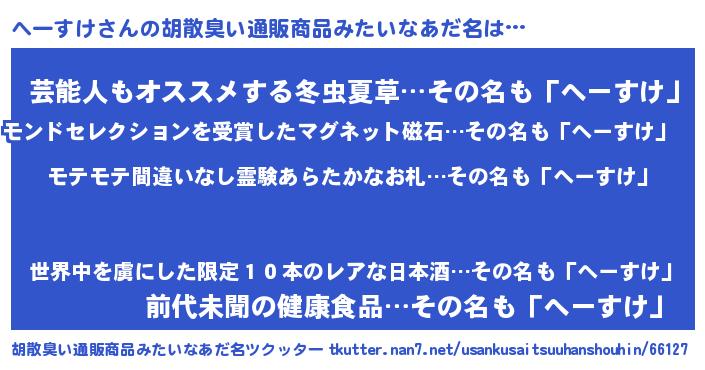 | ヒーロー風カッコイイあだ名 | 『スーパーヘースケ』『究極戦士ヘースケ』 |