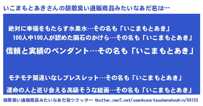 | 意味不明あだ名 | 『とにかく怪しいいこまもとあき』 |