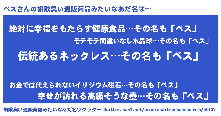 | 意味不明あだ名 | 『とにかく怪しいベス』『永久保存ベス』 |