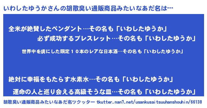 | 意味不明あだ名 | 『住所不定無職いわしたゆうか(47歳)』 |
