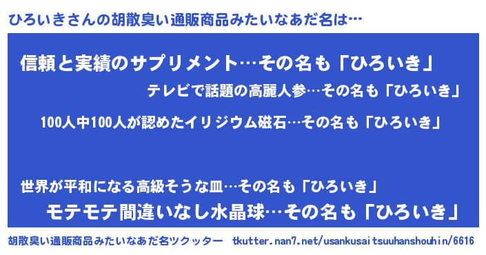 | ヘコむあだ名 | 『ひろ太郎』『ひろにー』『つくし』 |
