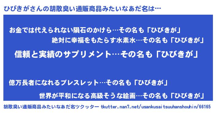 | ヘコむあだ名 | 『ひびお』『なまこ酢』『ひびもー』 |