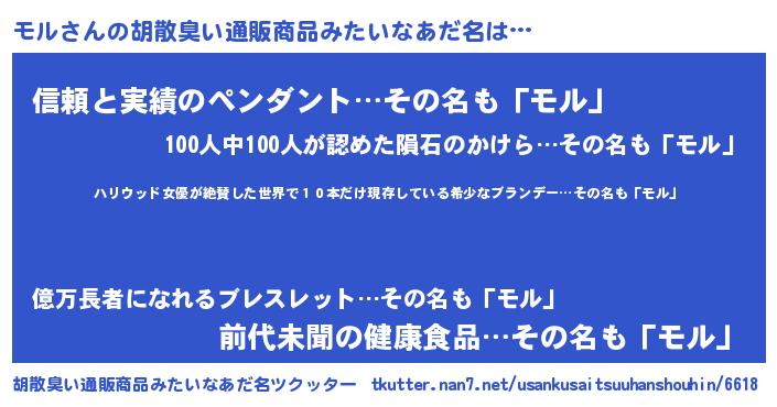 | ヘコむあだ名 | 『モルっぺ』『モル(笑)』『酢こんぶ』 |