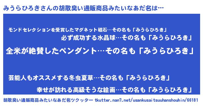 | 意味不明あだ名 | 『とにかく怪しいみうらひろき』 |