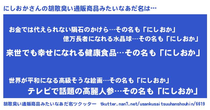 | ヘコむあだ名 | 『にしおか(苦笑)』『にしもー』 |