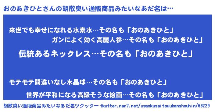 | ヘコむあだ名 | 『おのっ子』『おのあきひと(苦笑)』 |