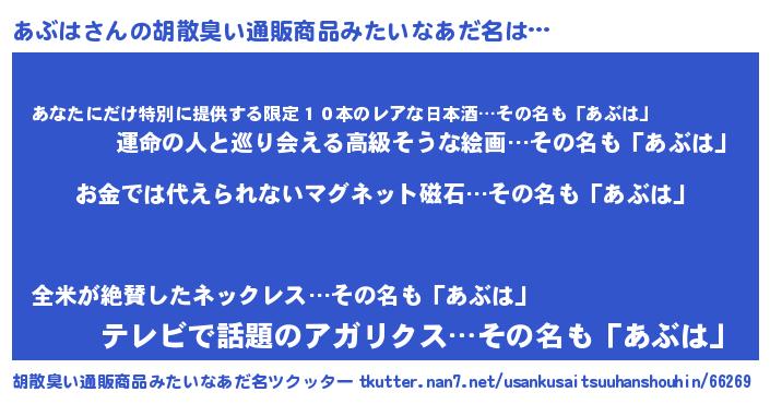 | ヒーロー風カッコイイあだ名 | 『愛の使者あぶは』『仮面アブダー』 |
