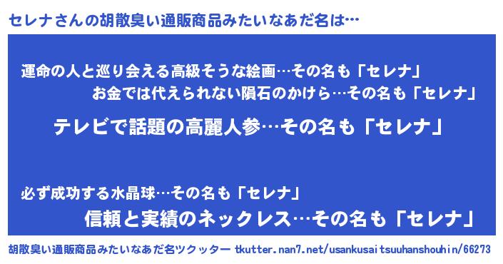 | 意味不明あだ名 | 『自称セレナ』『セレナフォーエバー』 |