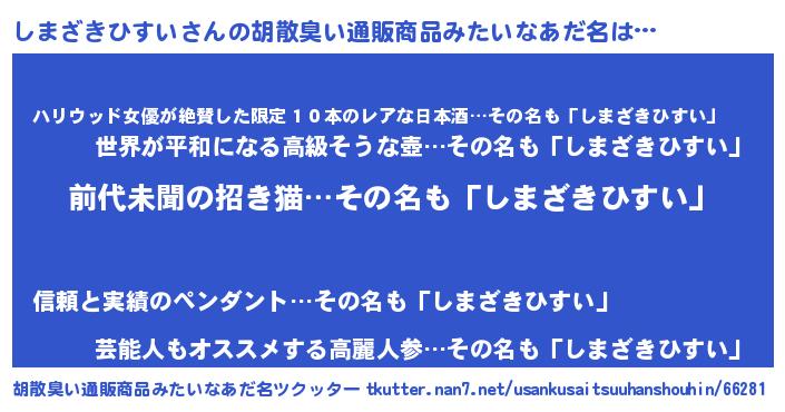 | 意味不明あだ名 | 『永久保存しまざきひすい』 |
