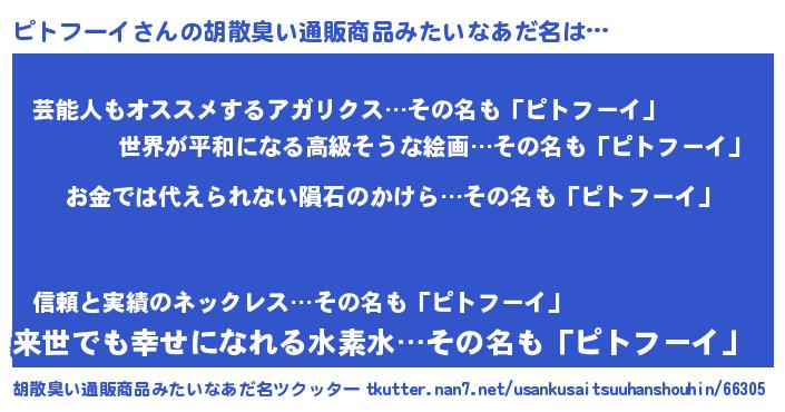 | ヘコむあだ名 | 『ピトフーイ(遠い目)』『酢こんぶ』 |
