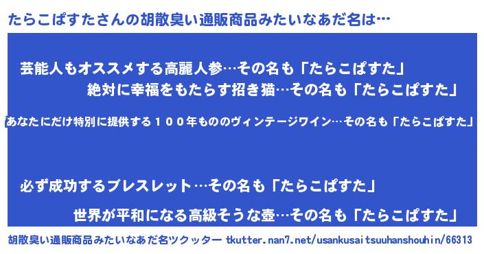 | 欧米人風あだ名 | 『ダレノガレたらこぱすた』 |
