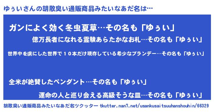 | 意味不明あだ名 | 『なめこ科ゆぅい属』『自称ゆぅい』 |