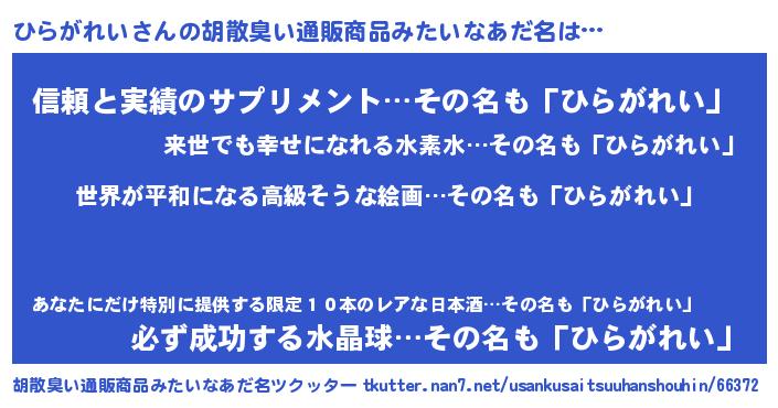 | 意味不明あだ名 | 『ひらがれいフォーエバー』 |