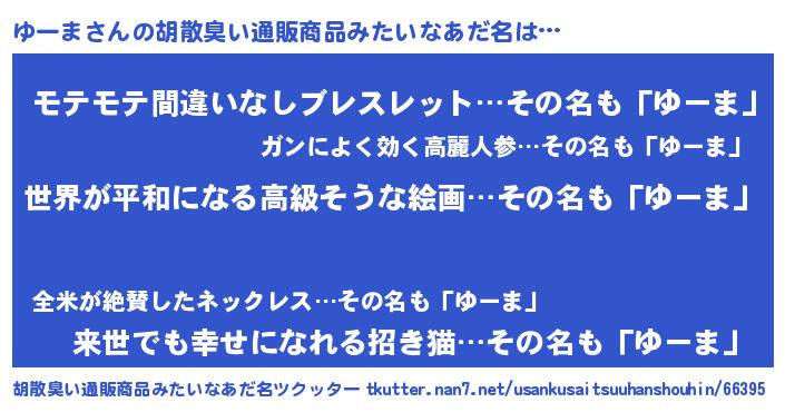 | 意味不明あだ名 | 『ゆーまフォーエバー』『ペロリンゆーま』 |