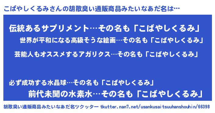 | 意味不明あだ名 | 『自称こばやしくるみ』 |