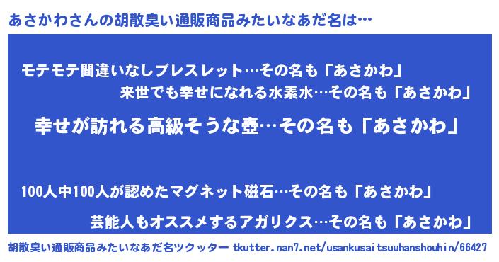 | 意味不明あだ名 | 『あさかわフォーエバー』『自称あさかわ』 |
