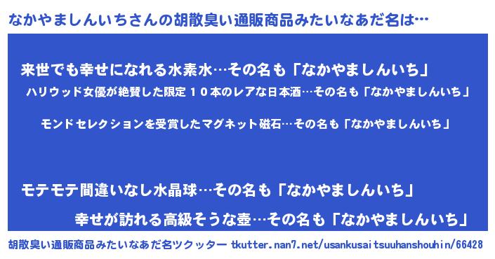 | ヘコむあだ名 | 『なかやましんいち(笑)』『なまこ酢』 |