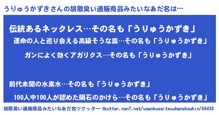 | 意味不明あだ名 | 『自称うりゅうかずき』 |