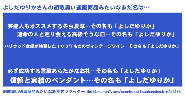 | 意味不明あだ名 | 『住所不定無職よしだゆりか(10歳)』 |