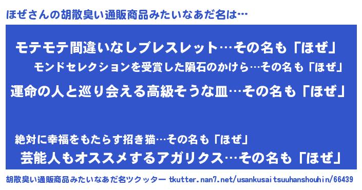 | ヘコむあだ名 | 『レバニラ』『ほぜもー』『ほぜ(爆)』 |