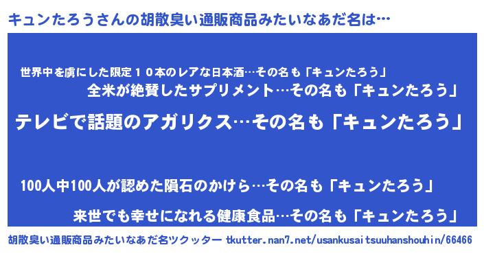 | 意味不明あだ名 | 『自称キュンたろう』 |