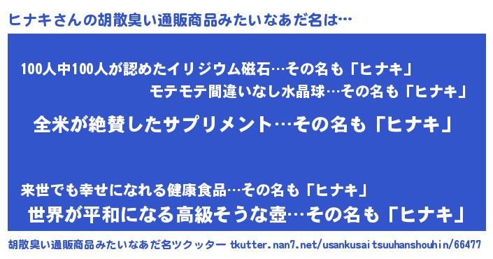 | 意味不明あだ名 | 『とにかく怪しいヒナキ』 |