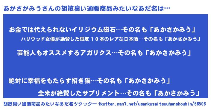 | 意味不明あだ名 | 『自称あかさかみう』 |