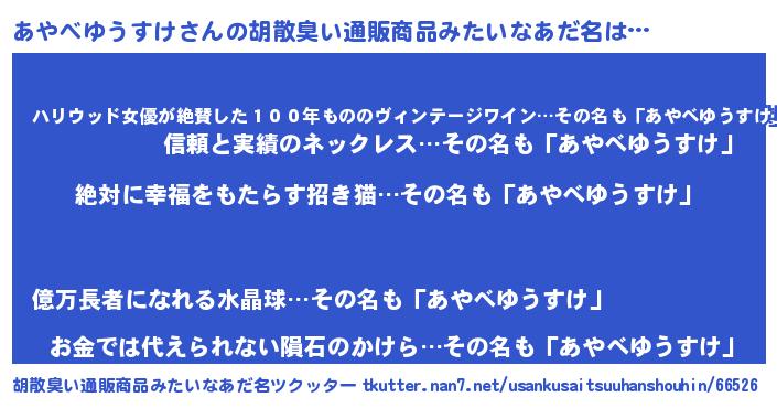 | ヘコむあだ名 | 『あやべゆうすけ(笑)』『あやを』 |