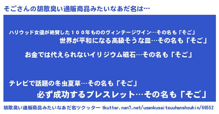 | ヘコむあだ名 | 『そごにゅー』『豆乳』『そごを』 |