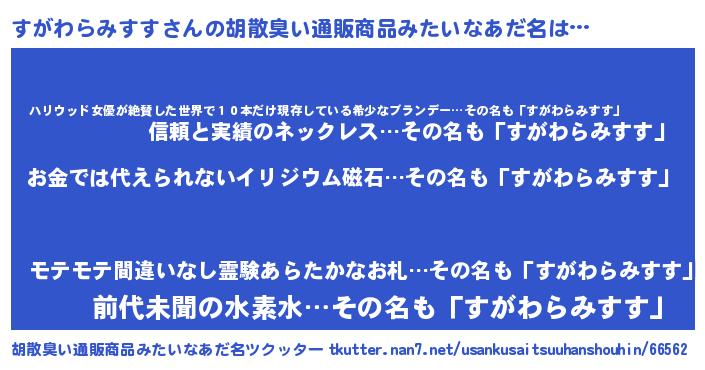 | 意味不明あだ名 | 『眠気覚ましガムすがわらみすす味』 |