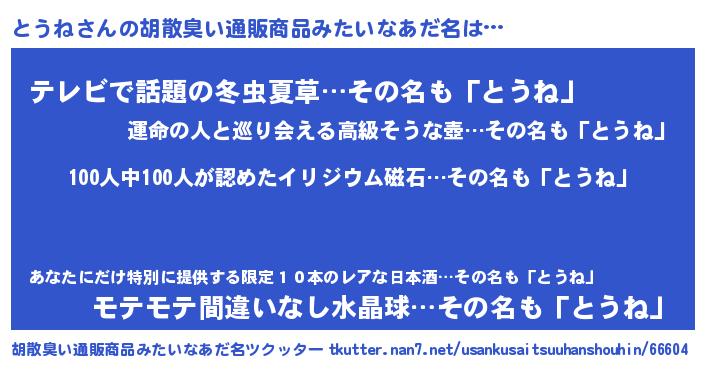 | 意味不明あだ名 | 『眠気覚ましガムとうね味』『自称とうね』 |