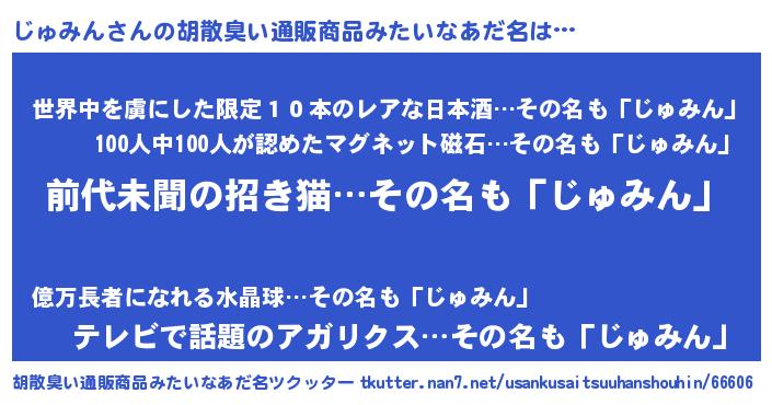 | 意味不明あだ名 | 『永久保存じゅみん』『自称じゅみん』 |