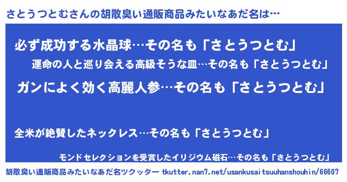 | 伝説のあだ名 | 『伝説の竜騎士さとうつとむ』 |
