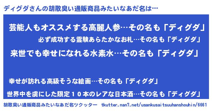 | 恥ずかしいあだ名 | 『ディちん』『ディグダデラックス』 |