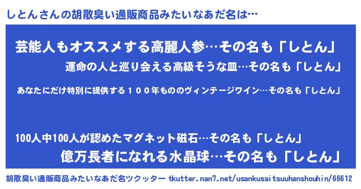| 意味不明あだ名 | 『住所不定無職しとん(11歳)』『自称しとん』 |