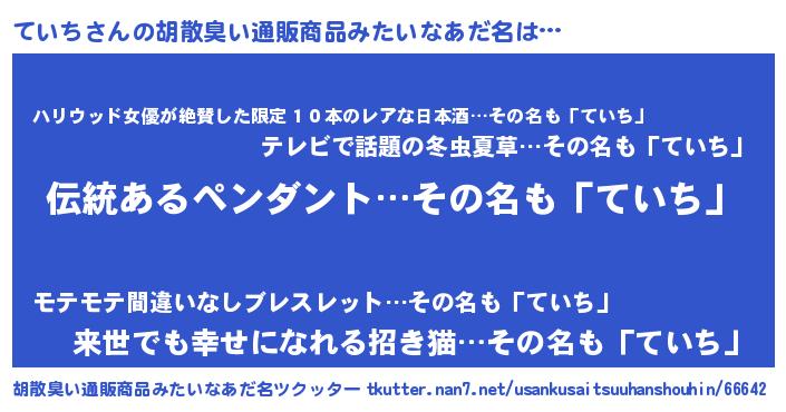 | 意味不明あだ名 | 『とにかく怪しいていち』『自称ていち』 |