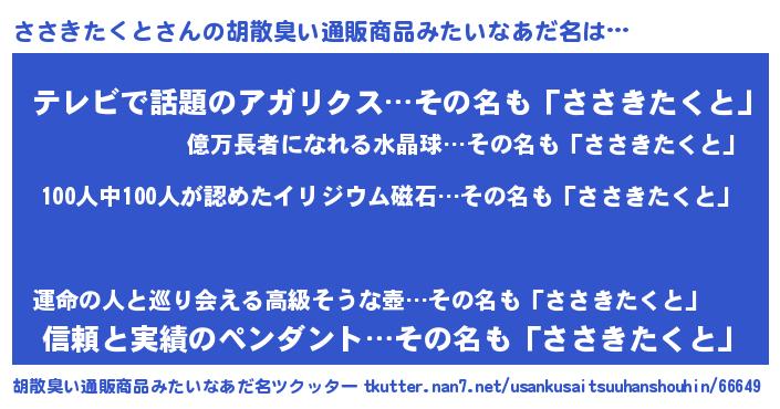 | ヒーロー風カッコイイあだ名 | 『正義の使者ささきたくと』 |