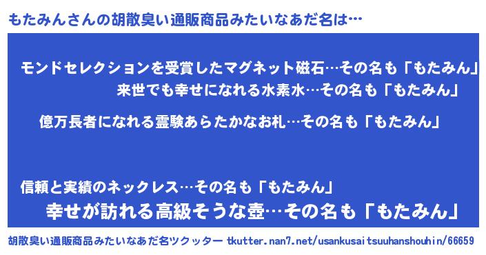 | ヒーロー風カッコイイあだ名 | 『スーパーモタミン』『愛の使者もたみん』 |