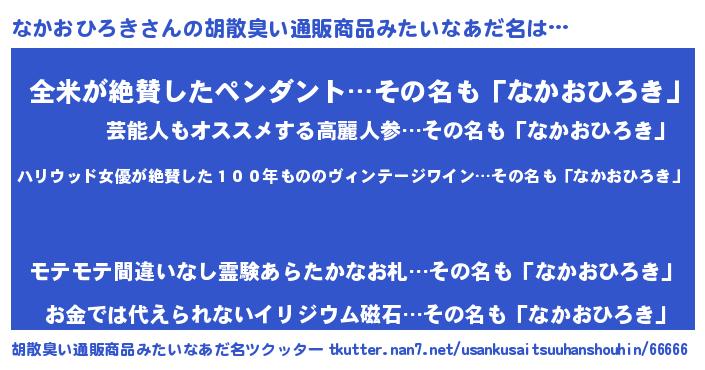 | 意味不明あだ名 | 『住所不定無職なかおひろき(4歳)』 |