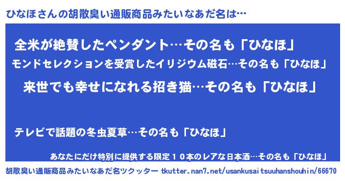 | 意味不明あだ名 | 『永久保存ひなほ』『たけのこ科ひなほ属』 |