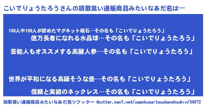 | 意味不明あだ名 | 『自称こいでりょうたろう』 |