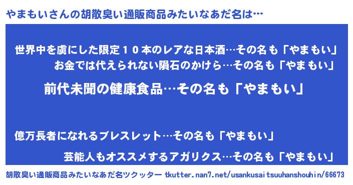 | 意味不明あだ名 | 『永久保存やまもい』『自称やまもい』 |