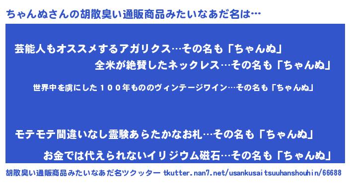 | 男性向けラノベタイトル風あだ名 | 『転生したらちゃんぬだった件』 |