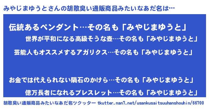 | ポケモン風あだ名 | 『ミヤセウス』『ヒミヤジマユウト』 |