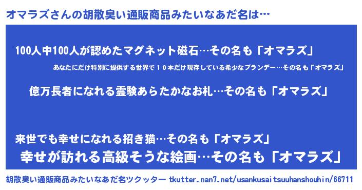 | ヒーロー風カッコイイあだ名 | 『スーパーオマラズ』『愛の使者オマラズ』 |