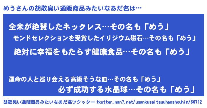 | 意味不明あだ名 | 『永久保存めう』『とにかく怪しいめう』 |