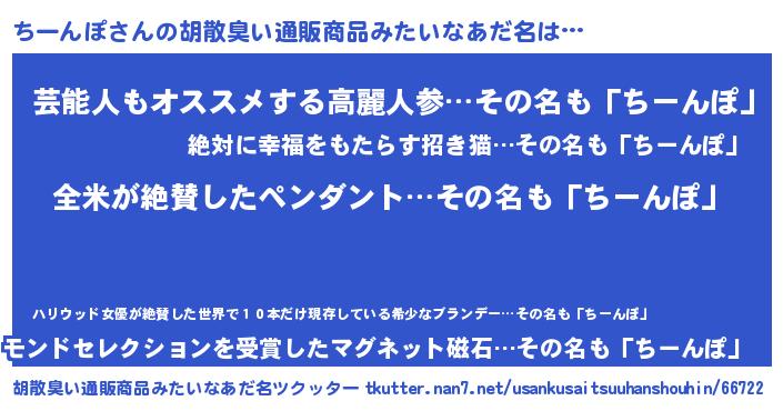 | ヘコむあだ名 | 『ちーっちょ』『ちーんぽ(小並感)』 |