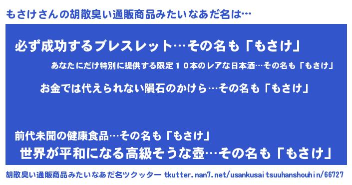 | ヒーロー風カッコイイあだ名 | 『愛の使者もさけ』『スーパーモサケ』 |